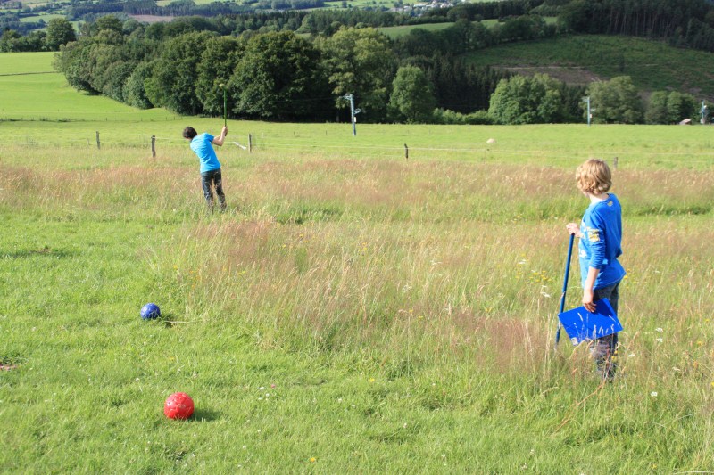 Boerengolf is de nieuwe rage binnen de buitensport. En zeker in de Ardennen waar de mooie en glooiende heuvels nog eens voor extra spanning en avontuur zorgen. Het spel is toegangelijk voor iedereen en met bijna elke leeftijd en kan zowel individueel als in teamverband gespeeld worden. Een leuke groepsactiviteit voor als je met je familie, vrienden of collega's een weekend naar de Ardennen komt. Het uiteindelijke doel is natuurlijk om de 10 holes in zo min mogelijk slagen af te leggen. Welk groep(je) gaat er met de eer vandoor?