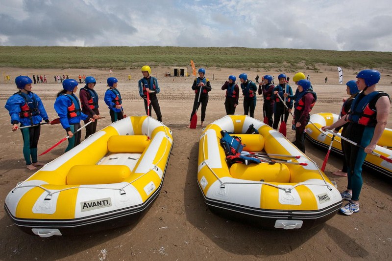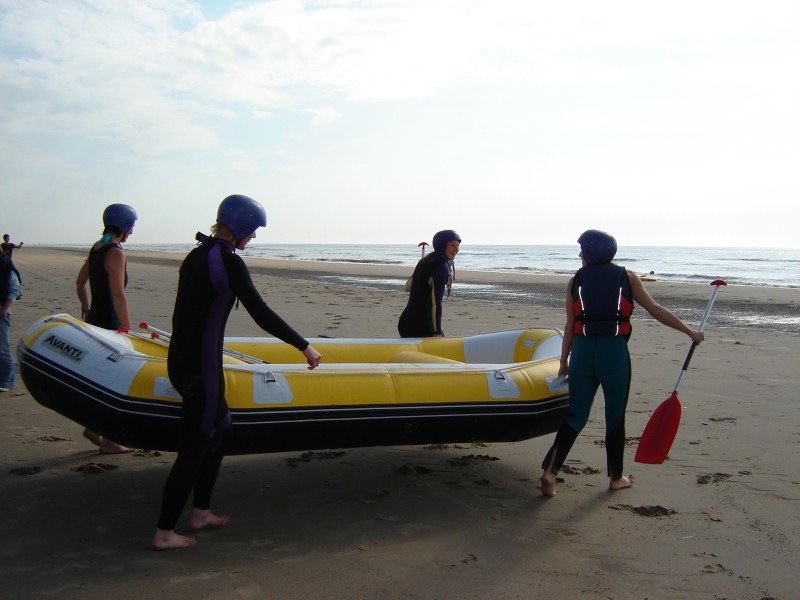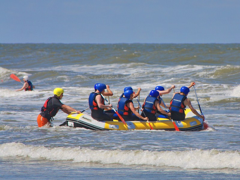 Branding raften draait voornamelijk om teamwork. De teams van circa 4-8 personen dienen zich door de branding van Noordwijk te bewegen. Als iedere deelnemer zijn taak goed uitvoert door op het juiste moment voor een golf uit te peddelen surft het hele team in de raft terug richting strand. Dit zal zeker niet onopgemerkt voorbij gaan, de ruige zee maakt het branding raften een stuk lastiger dan het lijkt: de adrenaline giert door je lijf!