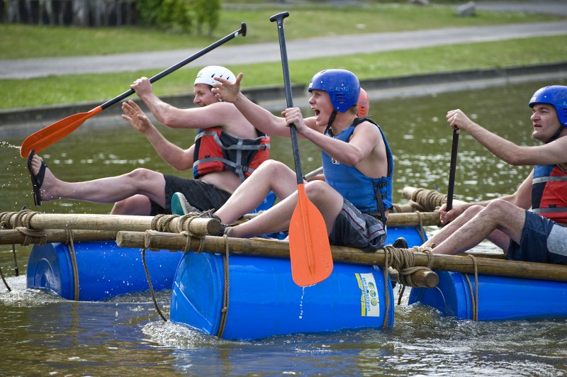 Met behulp van houten palen, tonnen en enkele stukjes touw gaan jullie aan de slag om een vlot in elkaar te zetten. Samenweking en goede knopen moeten ervoor zorgen dat jullie blijven drijven. Nadat het vlot gereed is gaan jullie uiteraard te water. Wie blijft er het langste droog?