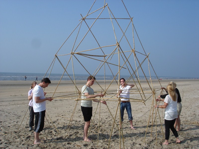 Bamboestieken is fantastische, creatieve en vooral verslavende activiteit! Met bamboestokken en elastiek is het tijd voor knutselen op een hoger niveau. Kunstwerken op basis van een aangewezen thema of in teamverband een constructie maken die je ook moet presenteren aan een ander team. Je begint met het construeren van driehoeken, vierkanten of sterren en vervolgens ga je alles aan elkaar ‘stieken' Een elastiek kan voldoende zijn maar naarmate de constructie groeit des te meer elastiek er nodig is. In alle vormen is deze activiteit uit te voeren en biedt gegarandeerd plezier!