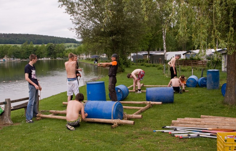 De mastworp, paalsteek, dubbele achtknoop; hoe zat het ook al weer… Bijgespijkerd op het gebied van knooptechnieken, bouwen jullie in teams een stevig vlot met behulp van touwen, palen en tonnen. Het leukste onderdeel komt als het vlot getest moet worden op het water. Het bouwkundig inzicht van de teams wordt op de proef gesteld bij het competitie onderdeel. Natuurlijk wordt ook deze activiteit in verband met veiligheid begeleid door een professionele instructeur.