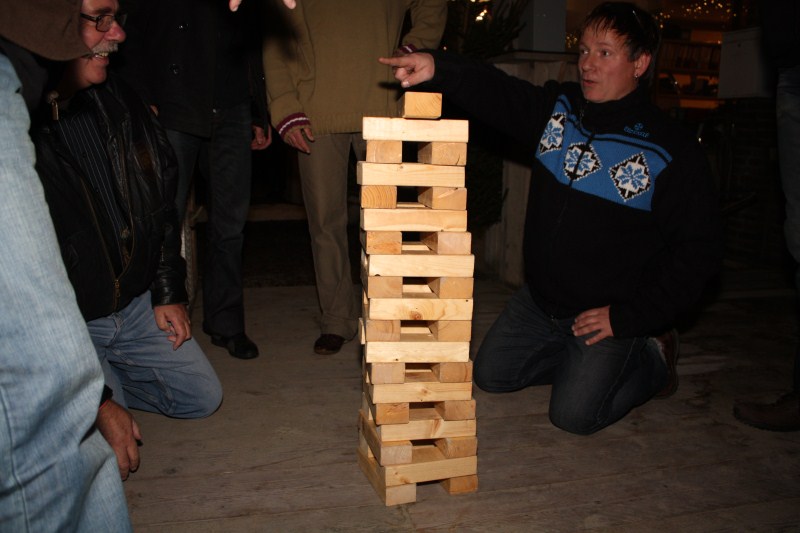 Voor de zware jongens onder ons! Zaag in duo’s zoveel mogelijk plakken van de kerstboomstam af binnen de gestelde tijd!